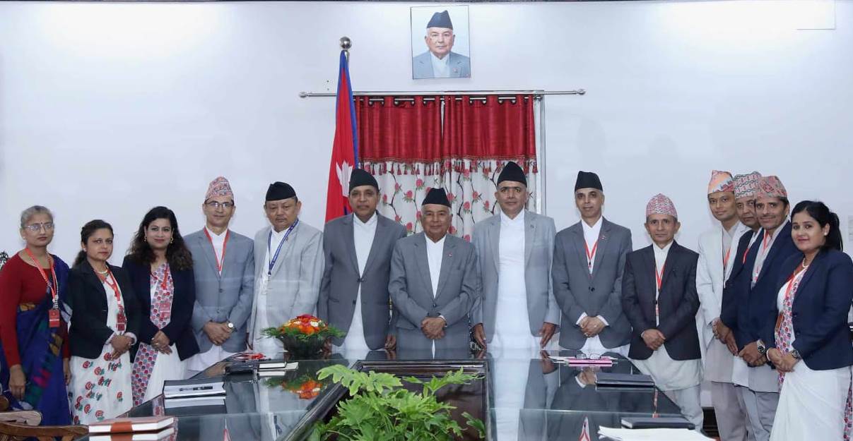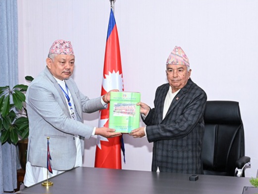 सम्माननीय राष्ट्रपतिज्यू समक्ष राष्ट्रिय प्राकृतिक स्रोत तथा वित्त आयोगको छैटौँ वार्षिक प्रतिवेदन, २०८१ पेश गरिएको