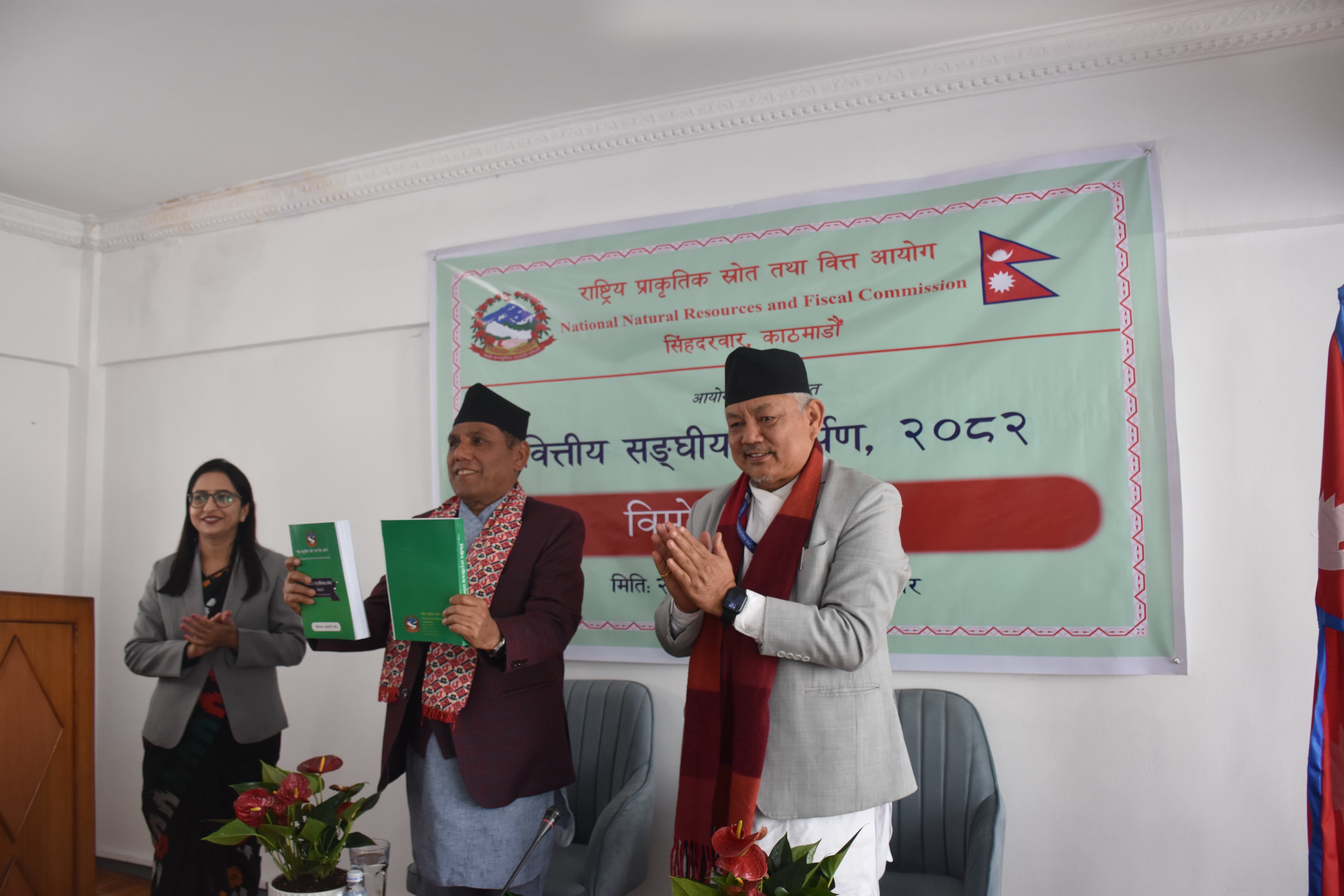 राष्ट्रिय सभाका सम्माननीय अध्यक्ष आयोगबाट प्रकाशित "वित्तीय सङ्घीयता दर्पण २०८२" विमोचन गर्नुहुँदै